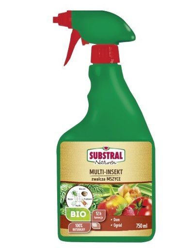 Multi-insect naturalny środek owadobójczy firmy Substral jest to specjalny spray do zwalczania mszyc, wełnowców, mączlików szklarniowych, przędziorków i miseczników na roślinach ozdobnych i jadalnych. Produkt na bazie naturalnych substancji, jest bezpieczny dla ludzi. Szczególnie polecany do zwalczania owadów na szczypiorku, bazylii, rozmarynie i innych ziołach uprawianych na domowym parapecie.  Środek jest gotowy do użycia.