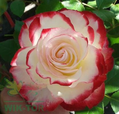 Róża wielokwiatowa odmiany 'JUBI' o pięknych dwubarwnych kwiatach. Krzew dorasta do około 50-70 cm wysokości i około 60 cm szerokości. Odmiana doskonale nadaje się na rabaty na terenach zieleni, w parkach i ogrodach, w miejscach reprezentacyjnych, także wraz z krzewami, bylinami oraz do sadzenia w pojemniki.